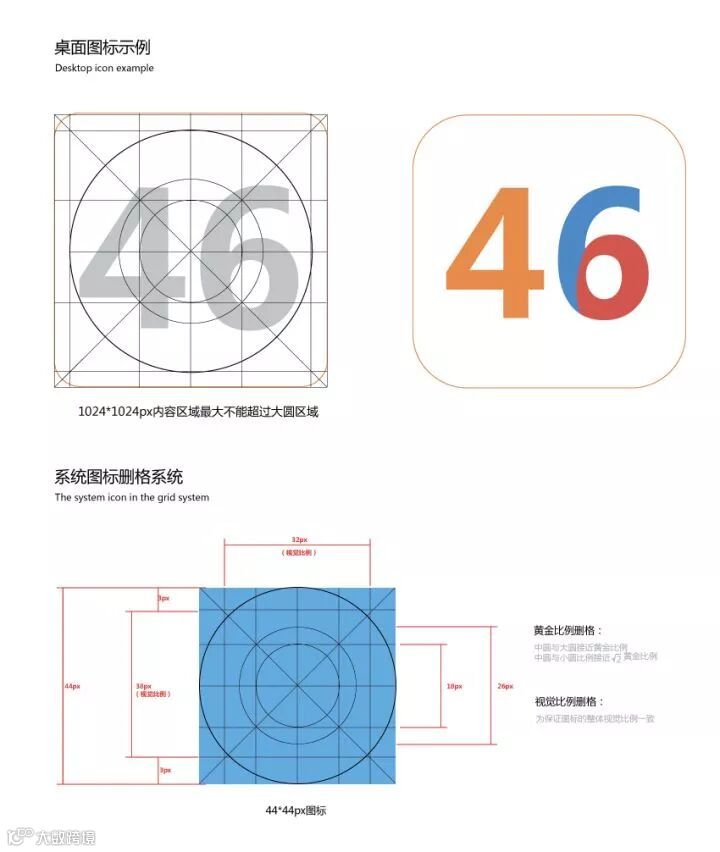2. IOS图标有一套栅格系统如下,一共有3个圈,建议主要图形不要超出最外圈,
