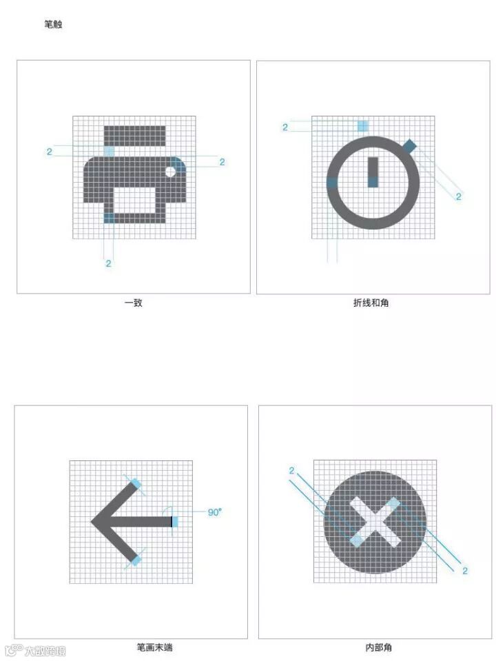 线宽一致,体积感留白一致,倒角圆角一致,角度一致,色彩一致,复杂度一