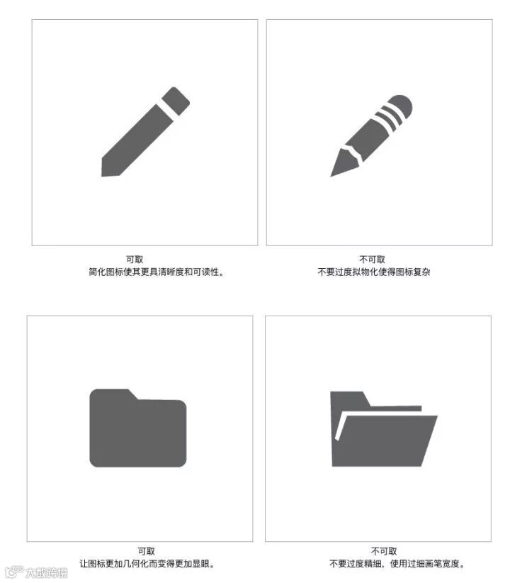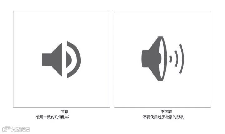 别性强,体积感一致为佳,随意的不规则的粗细不一的图标设计为差。