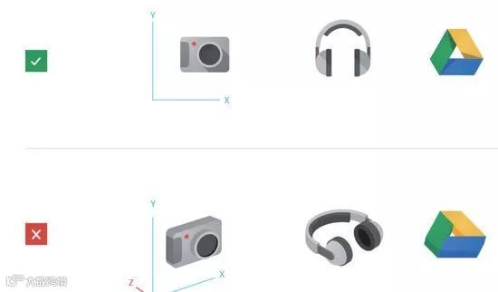 2.图标的光影尽量方向一致,风格一致,阴影羽化度一致。