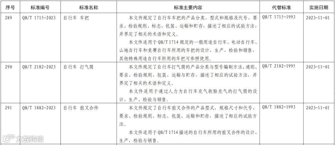 标准1:QB/T 1715-2023 自行车车把