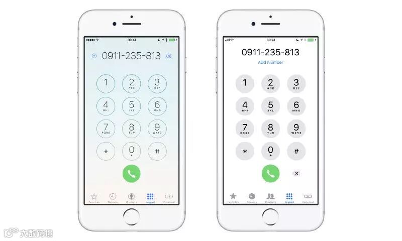 这个动效对比有些欺负 iOS了,但只看页面逻辑,安卓原生7.1 也是更胜一筹。iOS 输入数字后要么拨号,要么保存联系人;安卓则有完善的处理方式,拨号、新建联系人、添加到联系人、发送短信。
