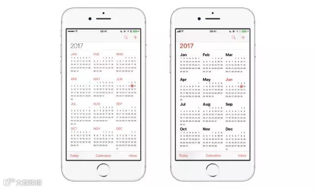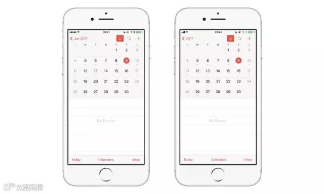 这个画面左上角的「Jun 2017」变成「2017」,原本以为是 feature,因为把 nav button 当成 nav title 用不太合理;但经网友指出,这样一来会变成没有显示当前月份,易造成混淆。我觉得挺有道理的,苹果应该不会为了改善一个缺点而制造更多缺陷,因此想一想是 bug 的可能性较大。
