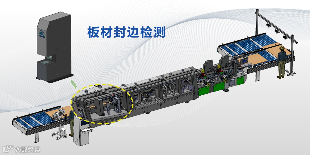 海研封边检测设备实现了从扫码到标记的全自动操作。当板材进入产线,扫码枪会实时识别板材信息并记录数据。经过封边机封边后,板材自动进入封边检测区域,快速完成缺陷判定。