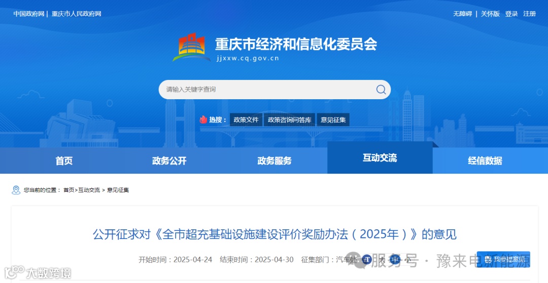 公开征求对《全市超充基础设施建设评价奖励办法(2025年)》的意见