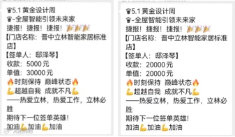 其次,新渠道开拓和推进“圈子营销”并举。张总分享道:“以前靠商场就可以活得很好,有些经销商满足于这一点,结果日渐式微,越做越糟糕,如果只固守现有渠道不开疆拓土,迟早‘家里的余粮’会消耗殆尽,惨淡收场。”有的经销商以商场为基础,打开新的管道,比如拎包入住、设计师、小区楼盘营销、社群、直播等,越做越强。张总结合自身实际情况和现有资源盘点以及省区营销总监韩兆停的多轮沟通,于是决定渠道建设第一步先做家装设计师渠道以及异业渠道。思路确定好后,张总带领团队星夜兼程,一口气成功与4家晋中市头部装企达成战略合作,并且以免费上样的形式推进。谈及此张总直言不讳:“对于我而言,我现在要做的就是尽快承接他们的客户资源,天下没有免费的午餐,有舍才有得;对于装企而言,可以很好的借助智能家居极大提升业主的装修档次,我相信大部分的业主不一定认为贵就是对但一定会为品质生活而买单并且可以做差异化营销拉开与其他竞争对手的差距,此举对于装企和我而言都是双赢甚至是多赢的局面”。以此同时,张总非常擅长整合资源,张总本人是所在商场异业联盟的会长,自开始做智能起就与“圈内人士”打招呼,与场内各联盟品牌资源共享互利互惠,从目前来看张总的客户除装企外,很大一部分是来自“圈子营销”。这就是立林大商的魄力与冲劲。