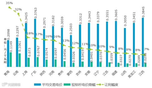 图2:2018年部分省区煤电市场交易价格及让利幅度