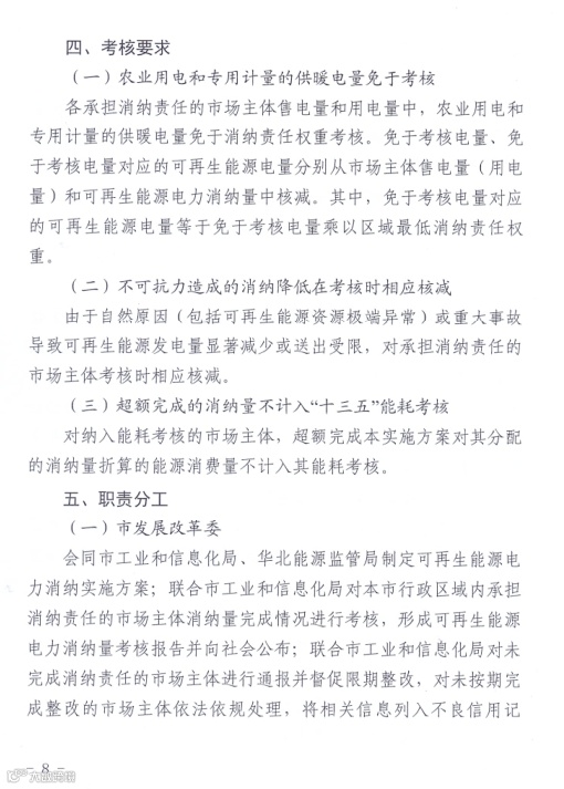 本市行政区域内的售电企业和电力用户协同承担消纳责任,各自完成本方案确定的可再生能源电力总量最低消纳量和非水电可再生能源电力最低消纳量。