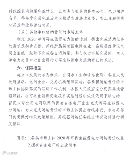 天津市发改委日前正式印发了《天津市2020年可再生能源电力消纳实施方案的通知》,通知中称,2020年,本市行政区域内可再生能源电力消纳量占全社会用电量的比重达到14.5%,非水电可再生能源电力消纳量占全社会用电量的比重达到14%。
