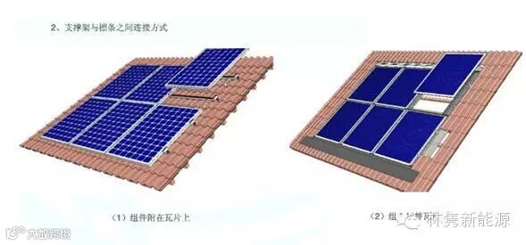 导读:一、组件与檀条安装结构二、斜面屋顶安装结构 1.彩钢瓦2.琉璃瓦三、平面屋顶安装结构