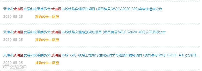 武清区市域(郊)铁路工程可行性研究相关专题报告编制项目