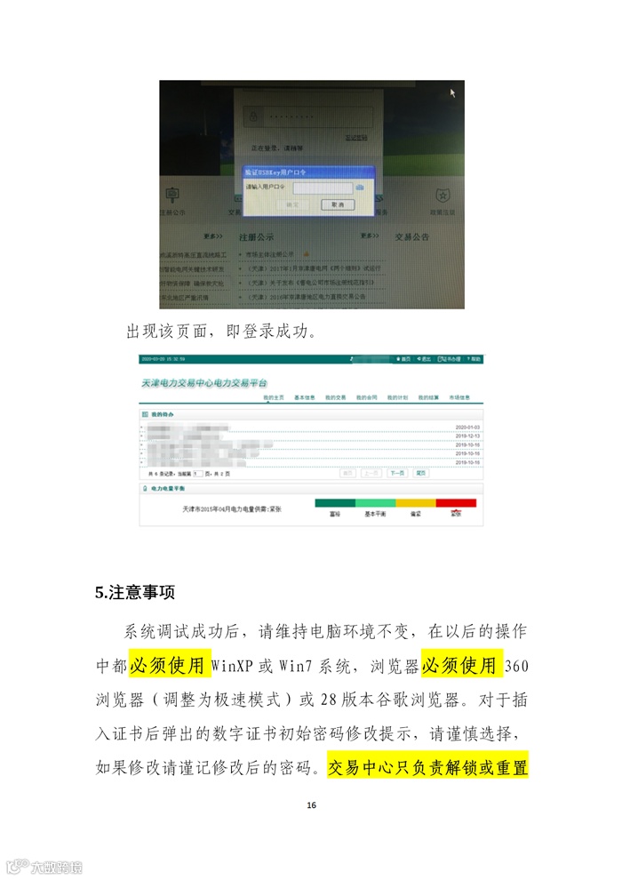 为确保电力用户通过交易平台顺利完成交易相关工作,交易平台运行操作系统必须使用WinXp或Win7系统,暂不支持Win8、Win10等操作系统。浏览器必须使用360浏览器(调整为极速模式)或28版本谷歌浏览器,电力交易平台不支持使用其他浏览器进行操作。28版本谷歌浏览器可从公共邮箱tjdljyzx@126.com下载(文件中心),密码为1@34abcD!。