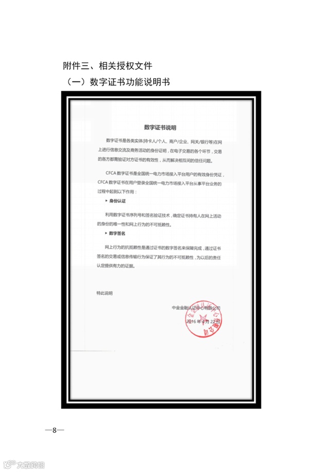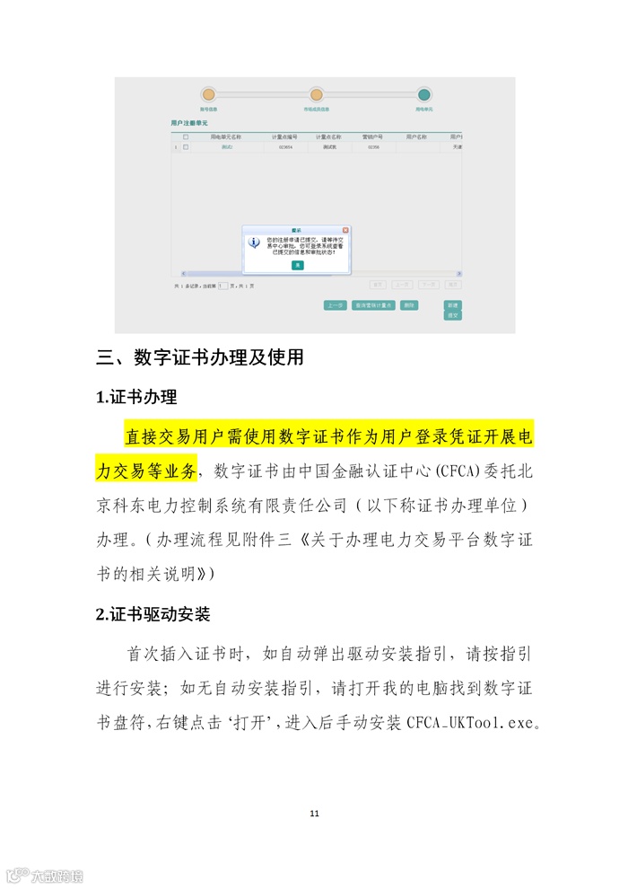 3、直接交易用户需同步开展数字证书办理和绑定工作,并于注册通过后30日内完成。未完成数字证书绑定的用户暂通过注册账号和密码开展交易相关工作。具体操作事宜请详细阅读附件一《直接交易用户注册操作手册》,按要求完成信息填报相关工作。