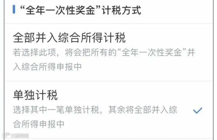 余海涛说,年终奖具体选哪种方式计税,纳税人不妨自己对比一下,在收入中的工资薪金界面可以更改选择。