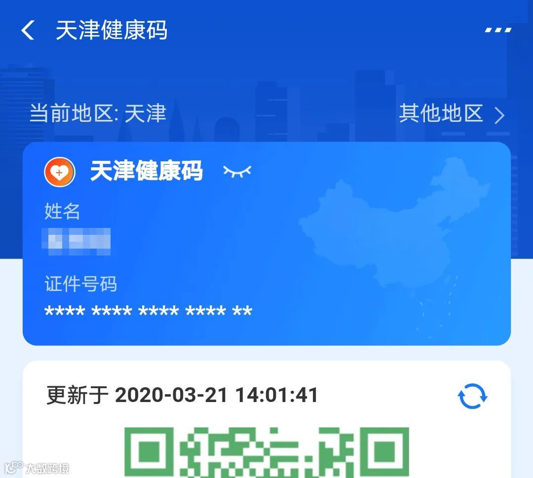 天津“健康码”依托全国一体化政务服务平台,通过跨地区防疫健康信息数据共享,实现京津冀“健康码”信息互认,生成天津“健康码”。