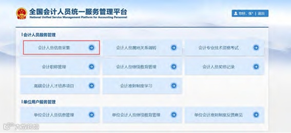 4.点击首页的会计人员信息采集进入到信息采集页面,或者会计人员信息服务下的信息采集