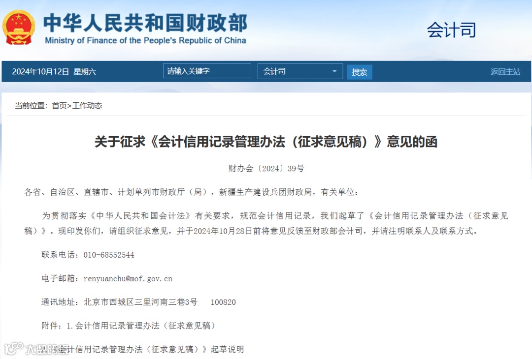 《会计信用记录管理办法(征求意见稿)》共十四条,让广东航信为大家划重点: