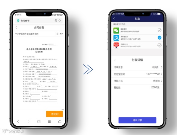 合同+支付+开票一体化解决方案助力教育局落实“双减”政策,打造无纸化标杆的同时,也让广大群众签署服务合同变得更加方便快捷。