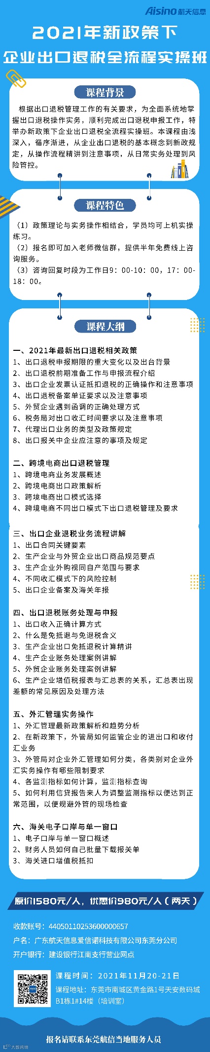 课程资讯丨2021年新政策下企业出口退税全流程实操班