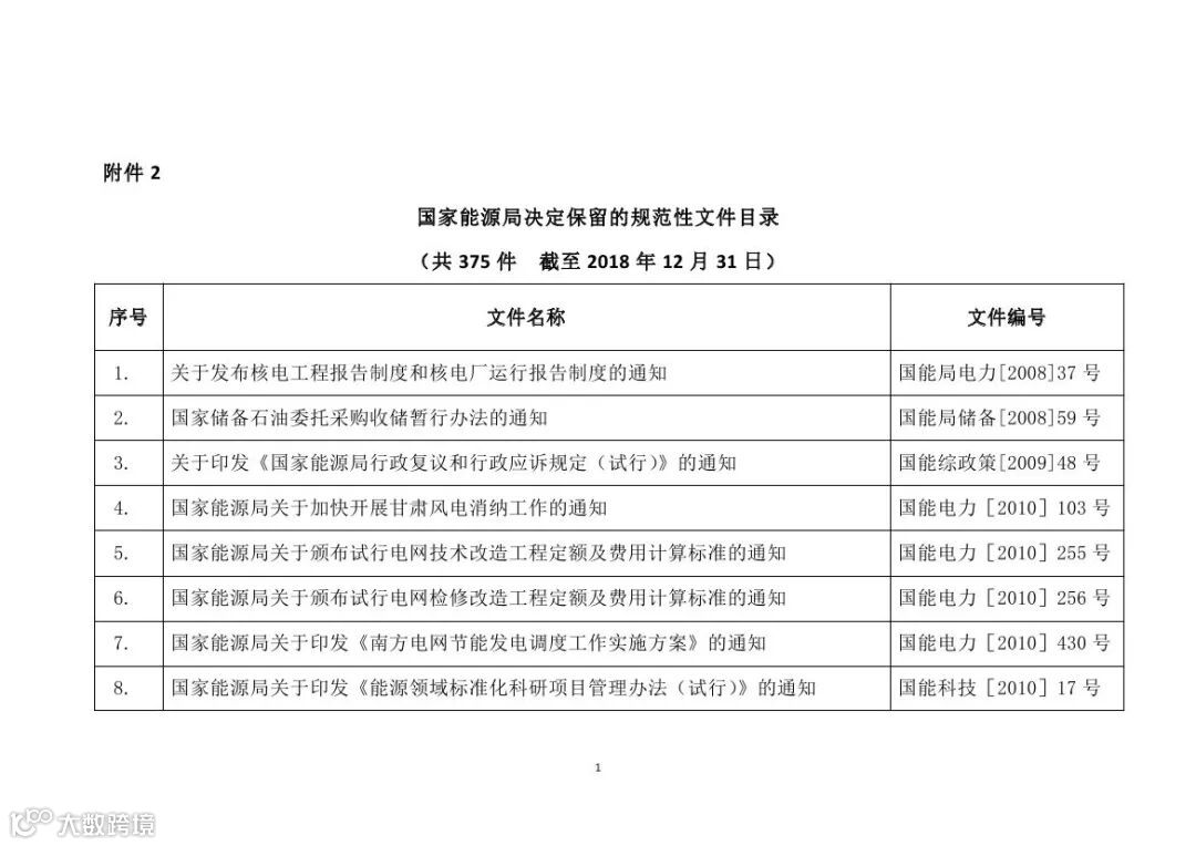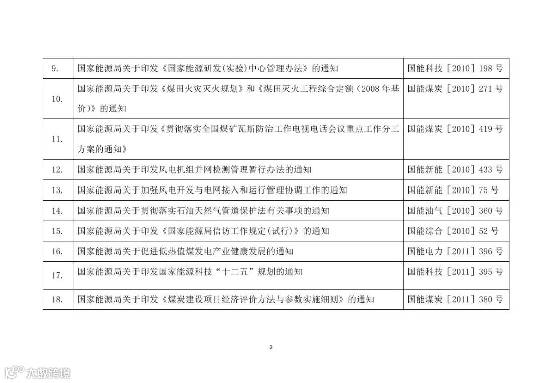 2. 国家能源局决定保留的规范性文件目录