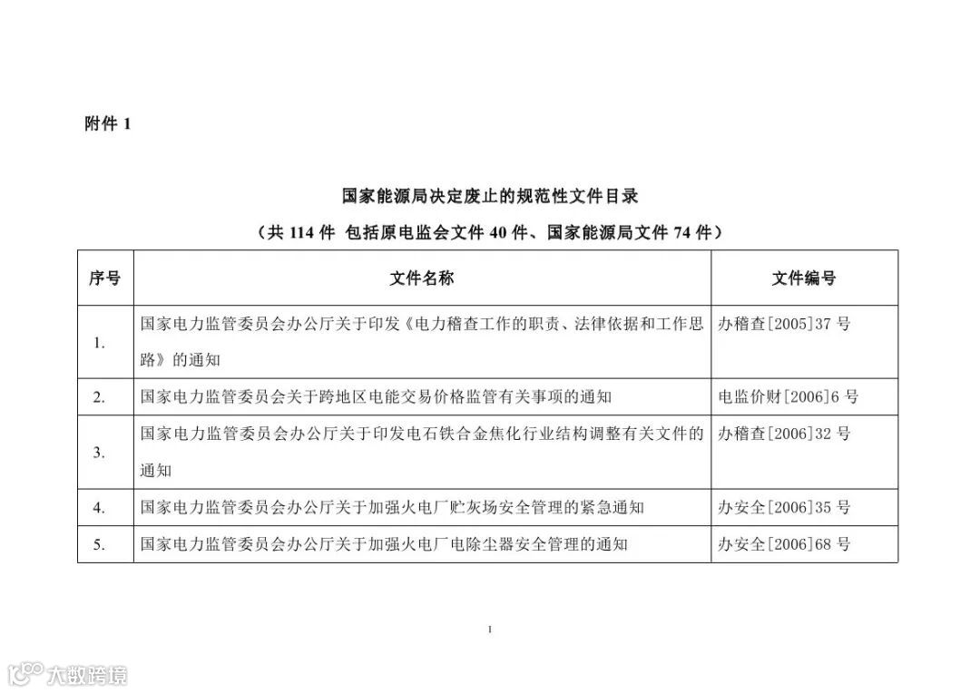 附件:1. 国家能源局决定废止的规范性文件目录