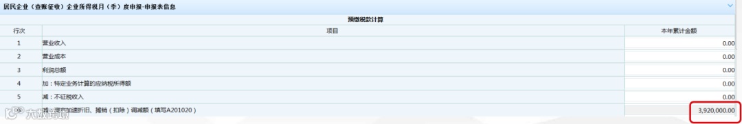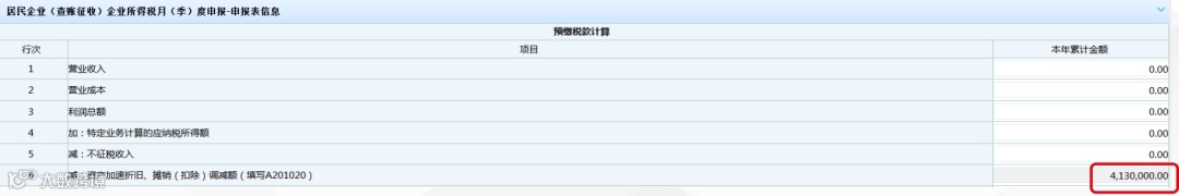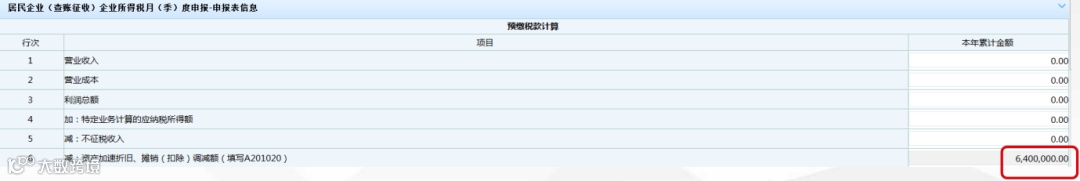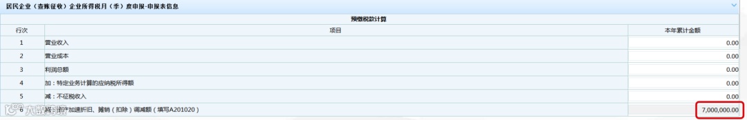 点击保存A201020填报数据后,纳税调减金额自动带入主表第6行: