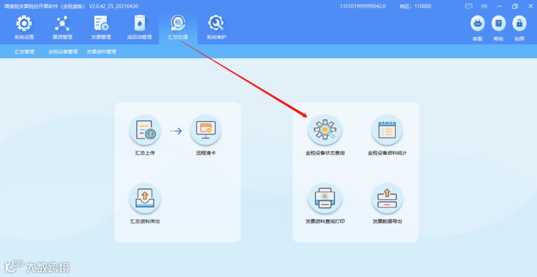 情况 2:上个月开具的发票部分或全部未上传成功,则系统无法自动完成抄报税。可在网络连接正常情况下待发票上传完成后,点击“汇总处理”——“汇总上传”按钮。