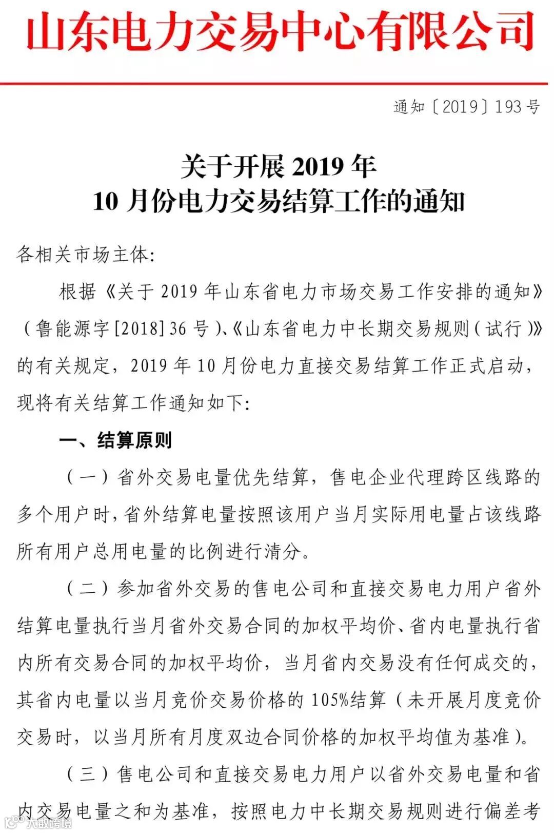 导读:近日山东电力交易中心开展2019年10月份电力交易结算工作,10月17-18日售电公司、直接交易用户核对10