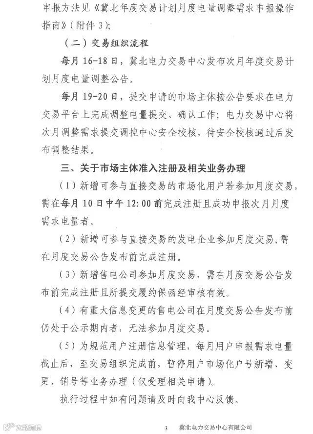 导读:近日冀北电力交易中心发布《关于进一步优化冀北地区电力直接交易有关工作的通知》,通知对交易申报时间、流程、市场