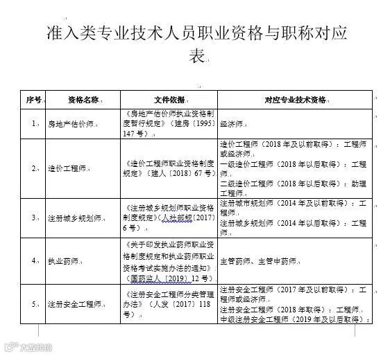 通过全国统一考试,取得准入类和水平评价类职业资格考试合格证书的专业技术人才,其职业资格直接对应相应系列和级别的职称(见下表),并根据国家相关政策变化适时动态调整。