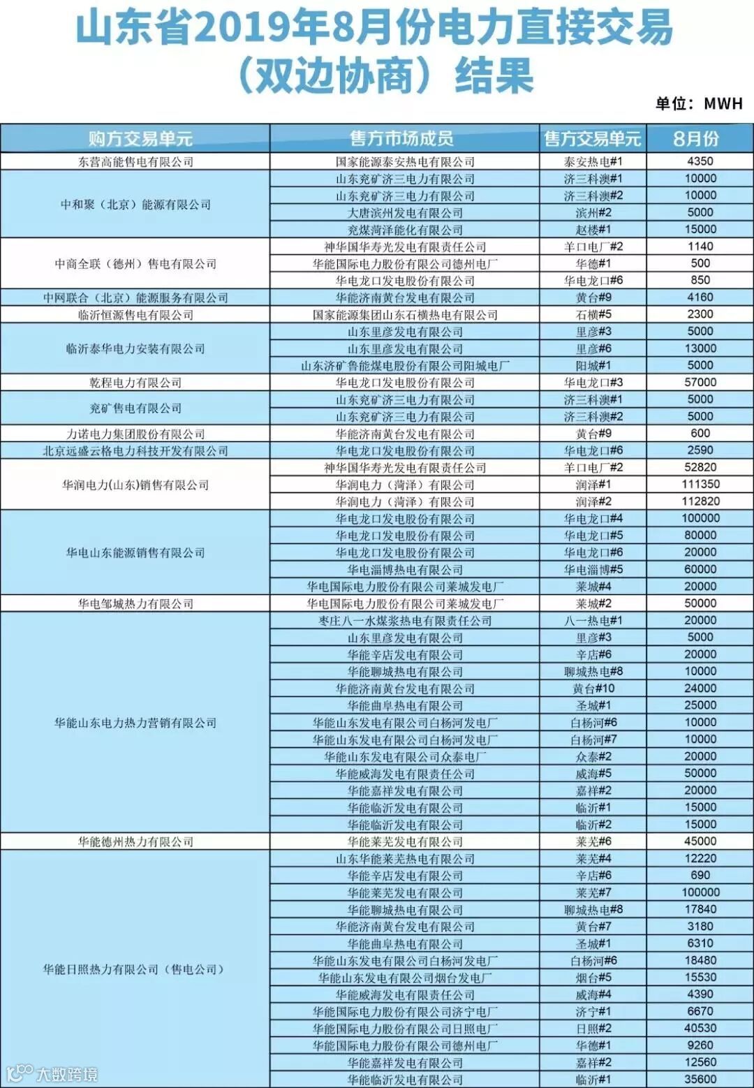 关于发布山东省2019年8月份电力直接交易(双边协商)结果的公告