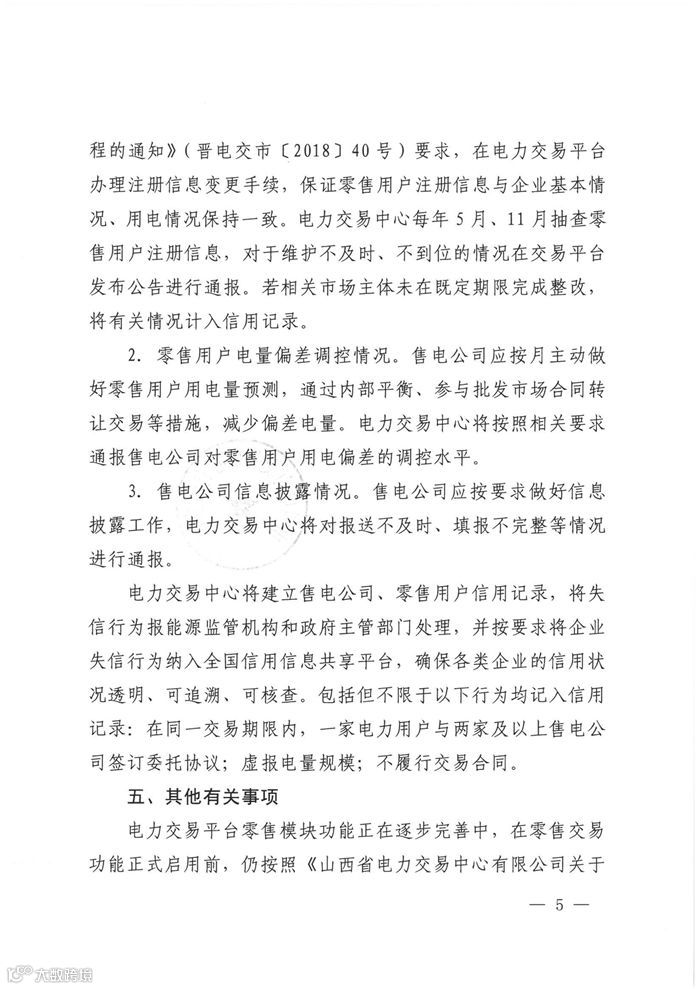 山西电力交易中心日前发布了《山西电力交易中心关于售电公司参与电力零售市场相关工作的通知》,售电公司向电力用户提供零售市场服务涉及全电力交易业务环节,主要包括开展市场注册、建立零售关系、开展零售交易、结算零售电量、解除零售关系等。