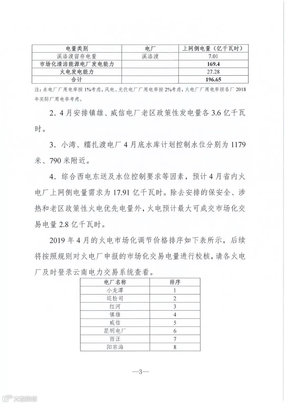 昆明电力交易中心日前发布了《2019年04月电力市场化交易信息披露》,综合预测2019年4月市场总需求折算到电厂上网侧预计为192.9亿千瓦时,其中省内市场用电需求预计为131.9亿千瓦时。省内市场方面,预计4月份省内市场可竞价电量约72亿千瓦时。