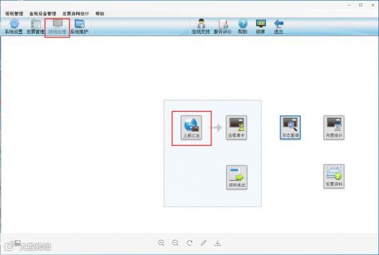 第1步:网络正常情况下,月初首次登陆开票软件系统自动进行上报汇总或手动点击上报汇总图标。系统提示:抄税成功。