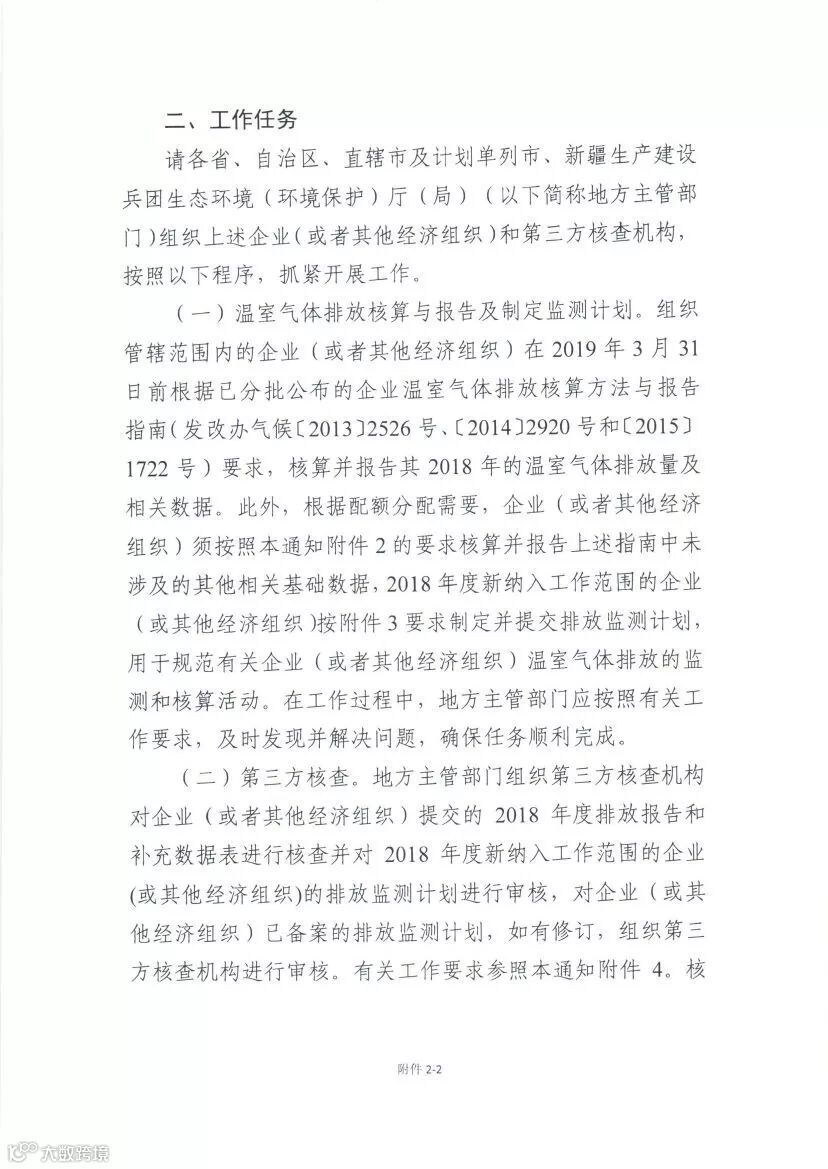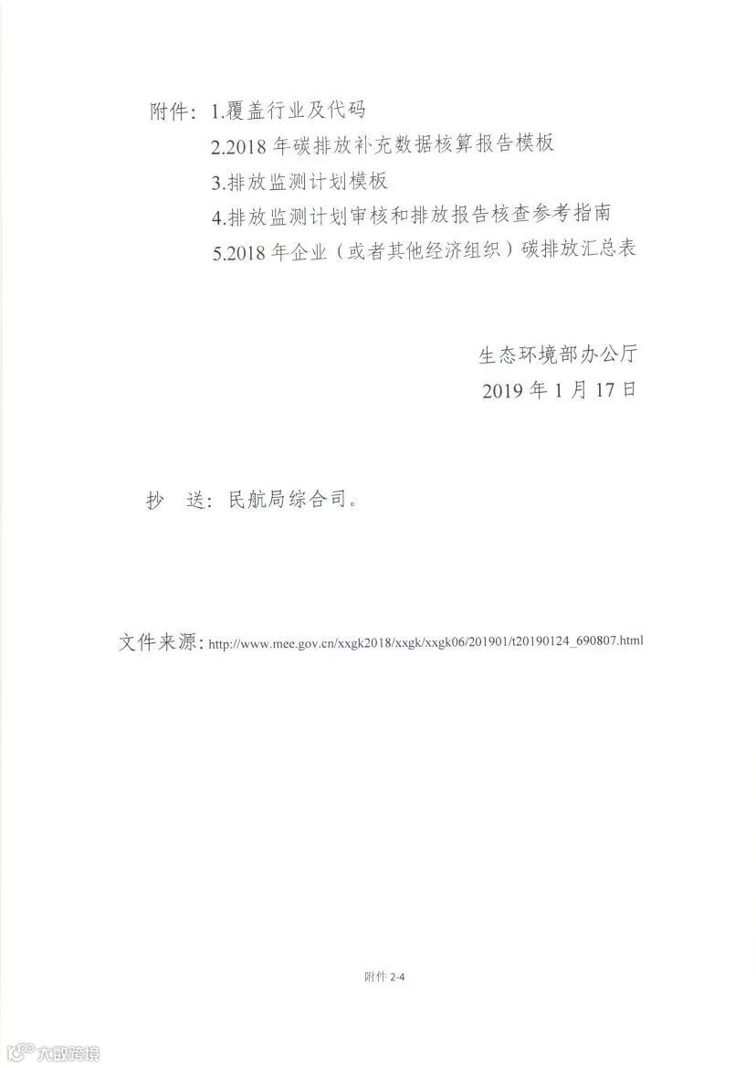 2.生态环境部办公厅印发《关于做好2018年度碳排放报告与核查及排放监测计划制定工作的通知》(环办气候函〔2019〕71号)