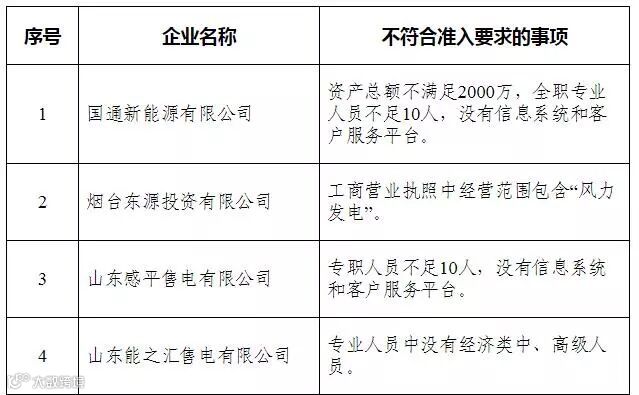 通过核查和限期整改,除部分售电公司外,其他均能达到《关于售电公司参与2017电力直接交易工作的补充通知》(鲁经信字〔2017〕8号)所明确的准入条件,并具备开展售电业务的基本要求。为增加工作透明度,保证核查结果公平公正,现将不符合我省售电公司准入要求的企业名单及已经其确认的相关事项公示如下: