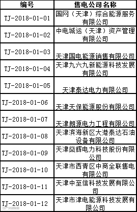 按照天津市发展改革委、市工业和信息化委《天津市售电公司准入与退出管理实施细则(试行)》(津发改规〔2018〕9号)的要求,天津电力交易中心有限公司受理了下列售电公司的注册申请,对售电公司提交的市场准入申请材料进行了完整性形式审查,现将企业名单及基本情况予以公示。