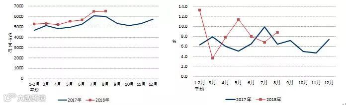 8月份,四大高载能行业用电量合计1659亿千瓦时,同比增长7.4%,占全社会用电量的比重为25.4%。其中,化工行业用电量382亿千瓦时,同比增长3.3%;建材行业用电量325亿千瓦时,同比增长6.1%;黑色金属行业用电量475亿千瓦时,同比增长14.0%;有色金属冶炼行业477亿千瓦时,同比增长5.6%。