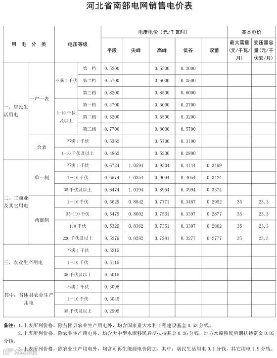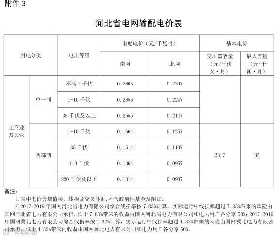 河北省物价局日前发布了《关于电力行业增值税税率调整相应降低工商业电价的通知》,自2018年5月1日起,南、北电网工商业及其它销售电价每千瓦时分别降低0.35分、0.33分,输配电价标准同步降低。详情如下: