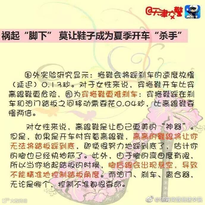 导读:点蓝色字关注我,送精美钥匙链或洗车票夏季由于天气炎热,很多人会穿拖鞋,或者高跟的凉鞋,这些都会成为你驾驶的安