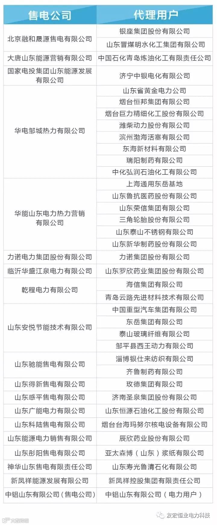 山东电力交易中心近日受理了售电公司提交的跨省区电力直接交易用户的代理协议。经审核,现将售电公司与跨省区电力直接交易用户代理关系及自主参加交易的电力用户名单予以公布。