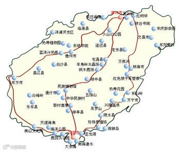 例如:海南省海口到榆林有三条普通国道(下图三条红色线),分别命名为“海口-榆林(东)公路、海口-榆林(中)公路、海口-榆林(西)公路”简称为“海榆东线、海榆中线、海榆西线”。