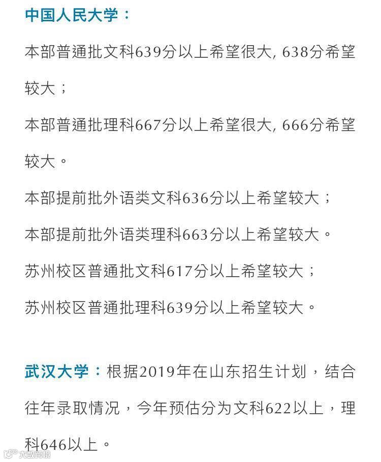 小编为您带来热门高校预估分数线