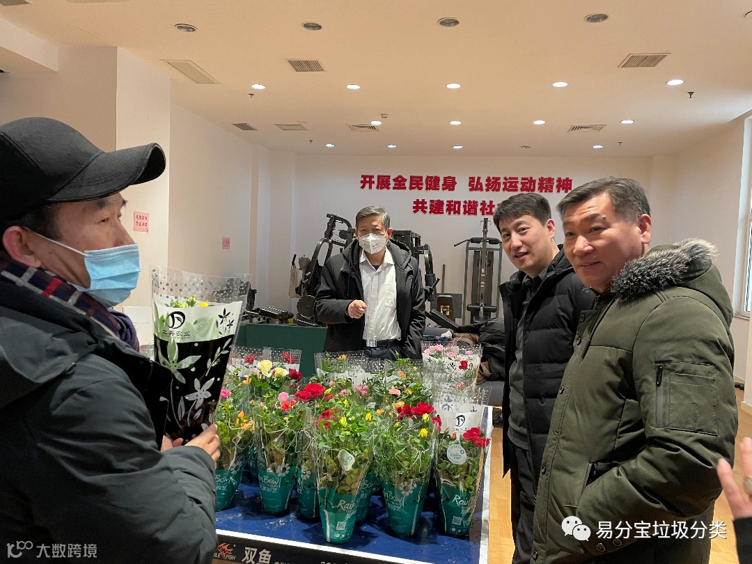 2022年1月27日,易分宝受邀配合城管委领导一起将天津市园林花卉管理中心准备的多彩玫瑰,四分类垃圾袋以及垃圾分类知识读本发放给各个区城管委,并由其转交至各区积极参与直播互动获奖者。