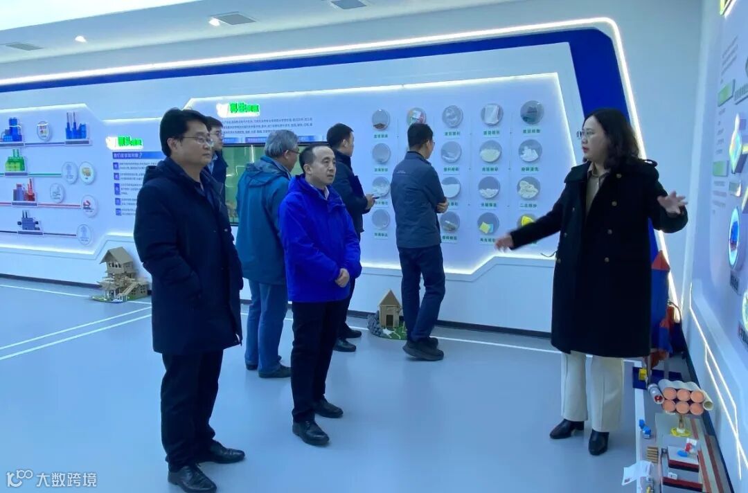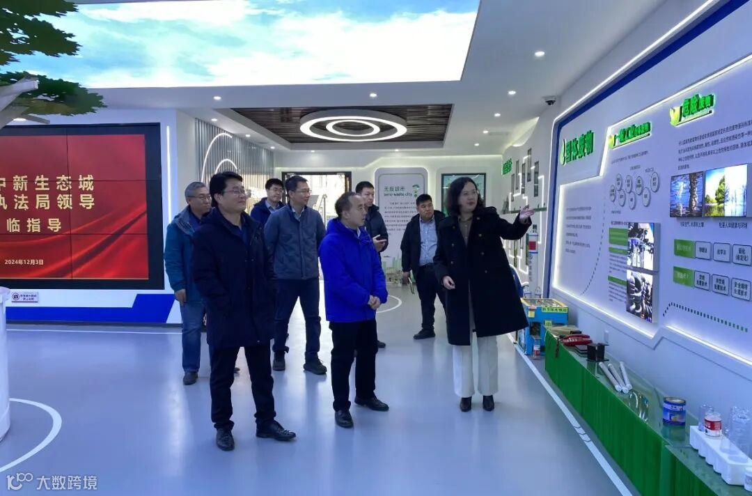 12月2日,中新天津生态城综合执法局局长茹铁虎、副局长王晓辉一行莅临无废城市科普体验馆参观调研,了解“无废大脑”平台建设,探讨交流“无废城市”建设工作,同创云科董事长王高捍、副总经理孙丽娜等陪同。