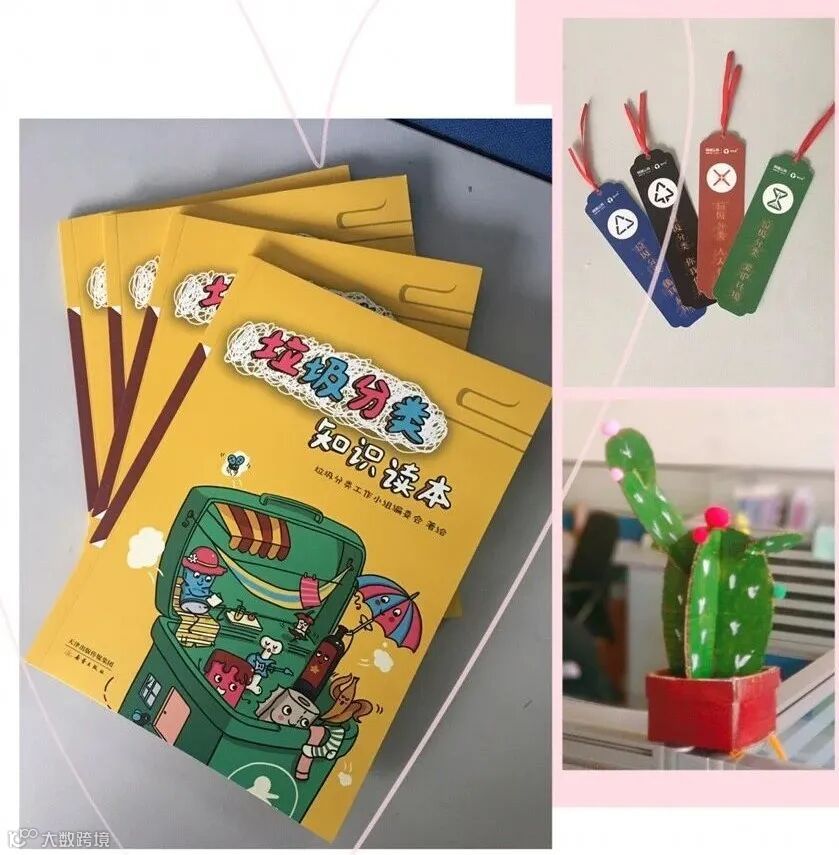课程最后,易分宝宣教团队精心为同学们准备了植树节礼物:垃圾分类读本、垃圾分类书签以及快递纸箱做的“仙人掌”。