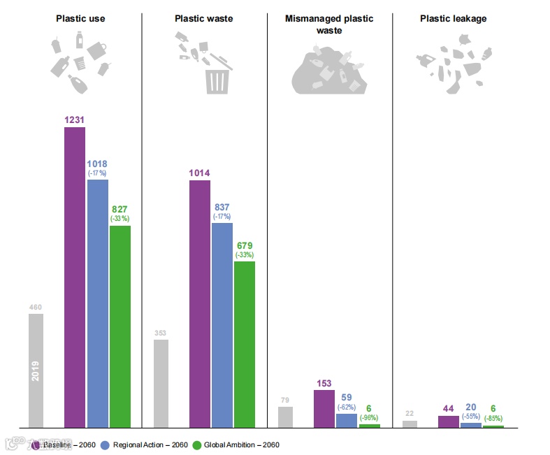 预计到2060年,所有塑料使用量显著增加