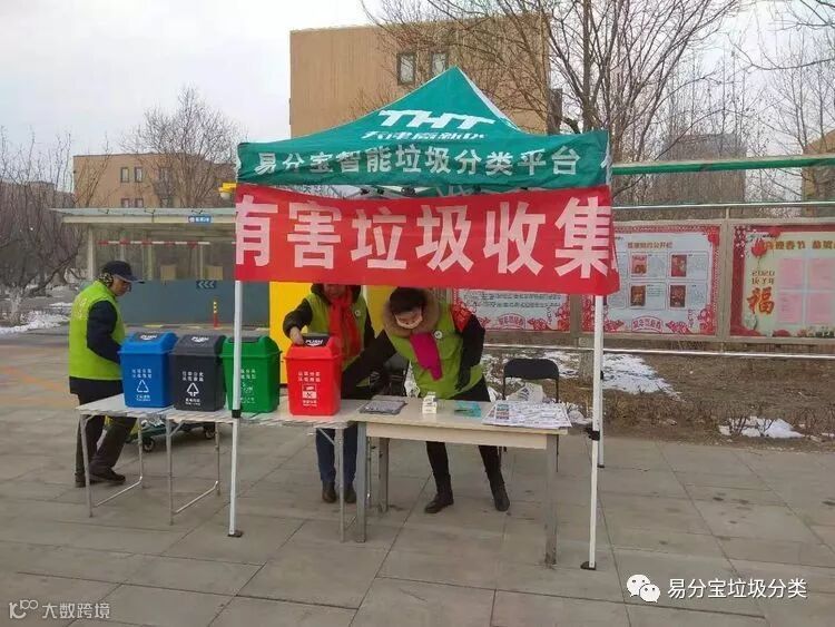 你出力,我出力,防治风险废物齐出力;你添彩,我添彩,魅力生态家园更精彩。天津高新区易分宝垃圾分类工作人员在社区,根绝风险废物污染,与您共同打造生态绿色家园。