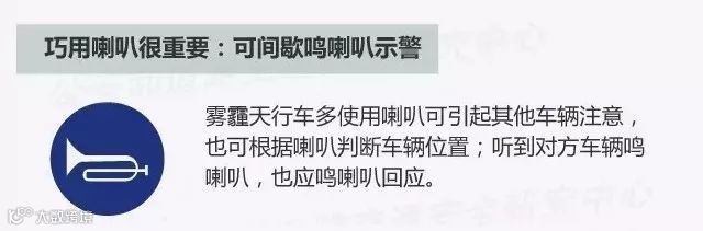雾天视线不好,勤按喇叭可以起到警告其他车辆的作用。当听到其他车的喇叭声,应当立刻鸣笛回应,示意自己车的位置。由于看不清前方道路和相邻道路的情况,尽量避免超车,如需超车可以按喇叭提醒前面车辆注意。