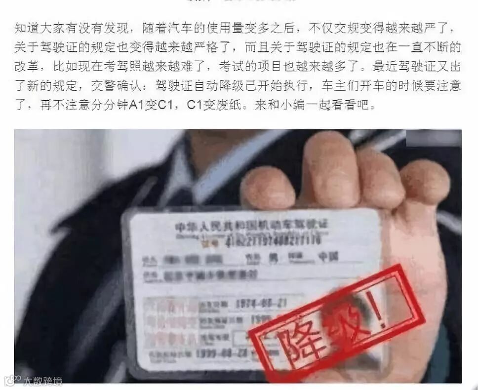 2012年9月,公安部就颁布了公安部令第123号,其中第68条规定:持有大型客车、牵引车、城市公交车、中型客车、大型货车驾驶证的驾驶人,有下列三种情形之一时,车管所应注销其最高准驾车型驾驶资格: